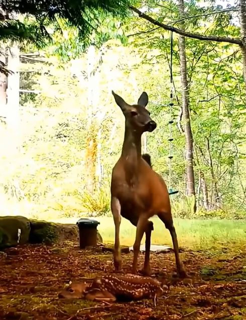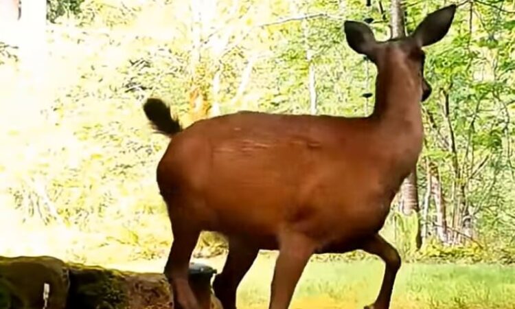 He stood on those impossibly spindly legs, looking less like a sturdy creature of the woods and more like a delicate sculpture of twigs and courage. His posture wasn’t one of fear or curiosity. It was something else entirely. It was a watch.