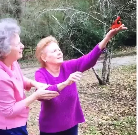 “My father-in-law went outside and saw it was a cardinal. It was just sitting there, completely alert and calm — nothing wrong with it,” Patteson said. “He was able to approach it and pick it up. He brought it in the house. [Debbie and Jeanne] were just ecstatic. They were taking pictures and crying and saying, ‘Oh my gosh, it really happened!’”