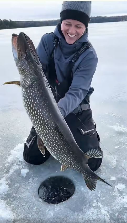 Northern pike are aggressive, hard-fighting fish that thrive in cold water. When lakes freeze over, they remain active, making them one of the most exciting species to target during ice fishing season. Their sheer size, explosive strikes, and relentless runs make every catch a potential story for the ages.