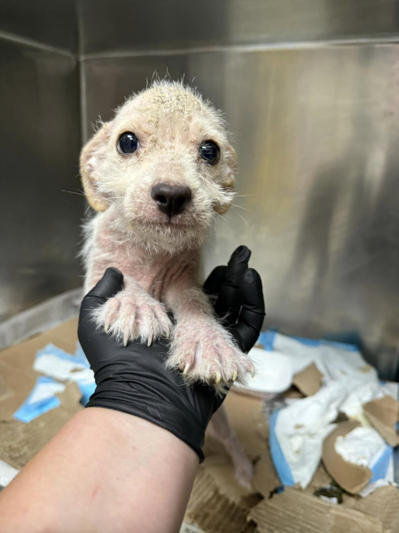 A few months ago, a mom and daughter in Houston, Texas, came across a Facebook post about a puppy named Scratchy. From the pictures of Scratchy they saw, they could tell he was tiny and mangy — and totally adorable.