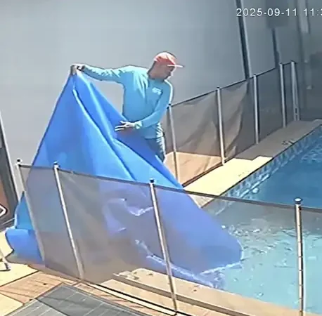 Security camera footage shows Orlando discovering the dog at the bottom of the pool — and using CPR to save his life: