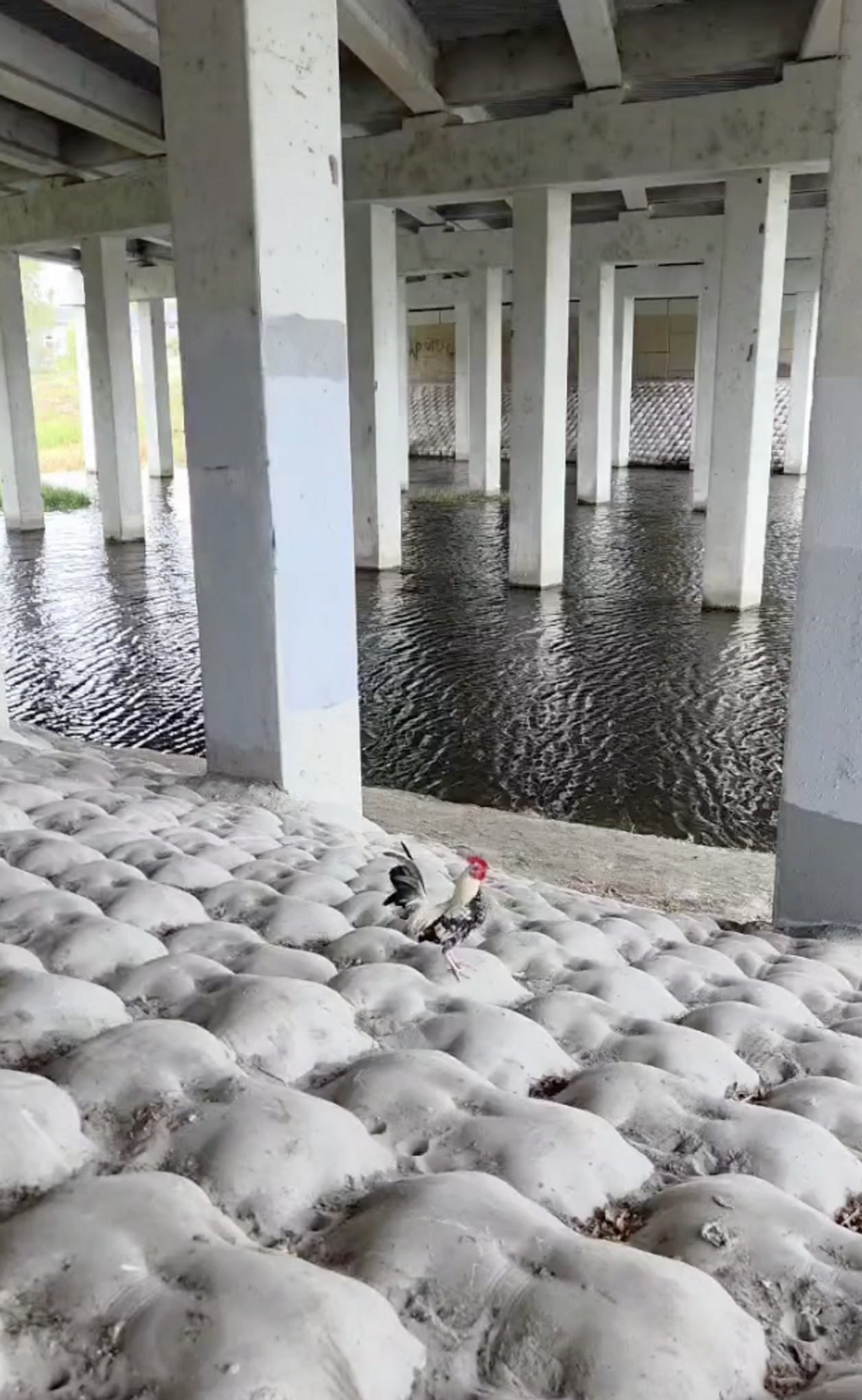 “John was a little ahead of me, and all of a sudden, he slows down and says, ‘Wait … is that a rooster?’” Jeniffer told The Dodo. “Sure enough, there was a rooster just standing there on the side of the bridge, right next to this old Nike box.”