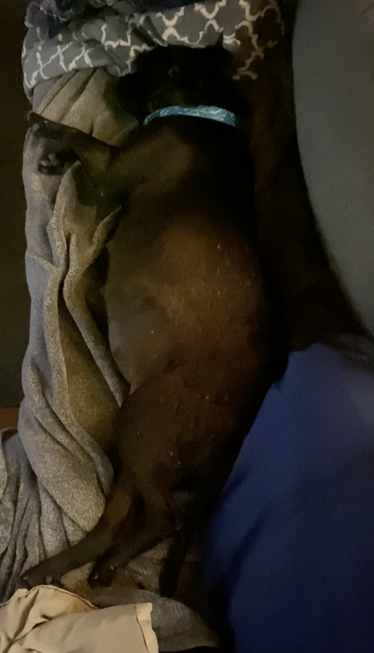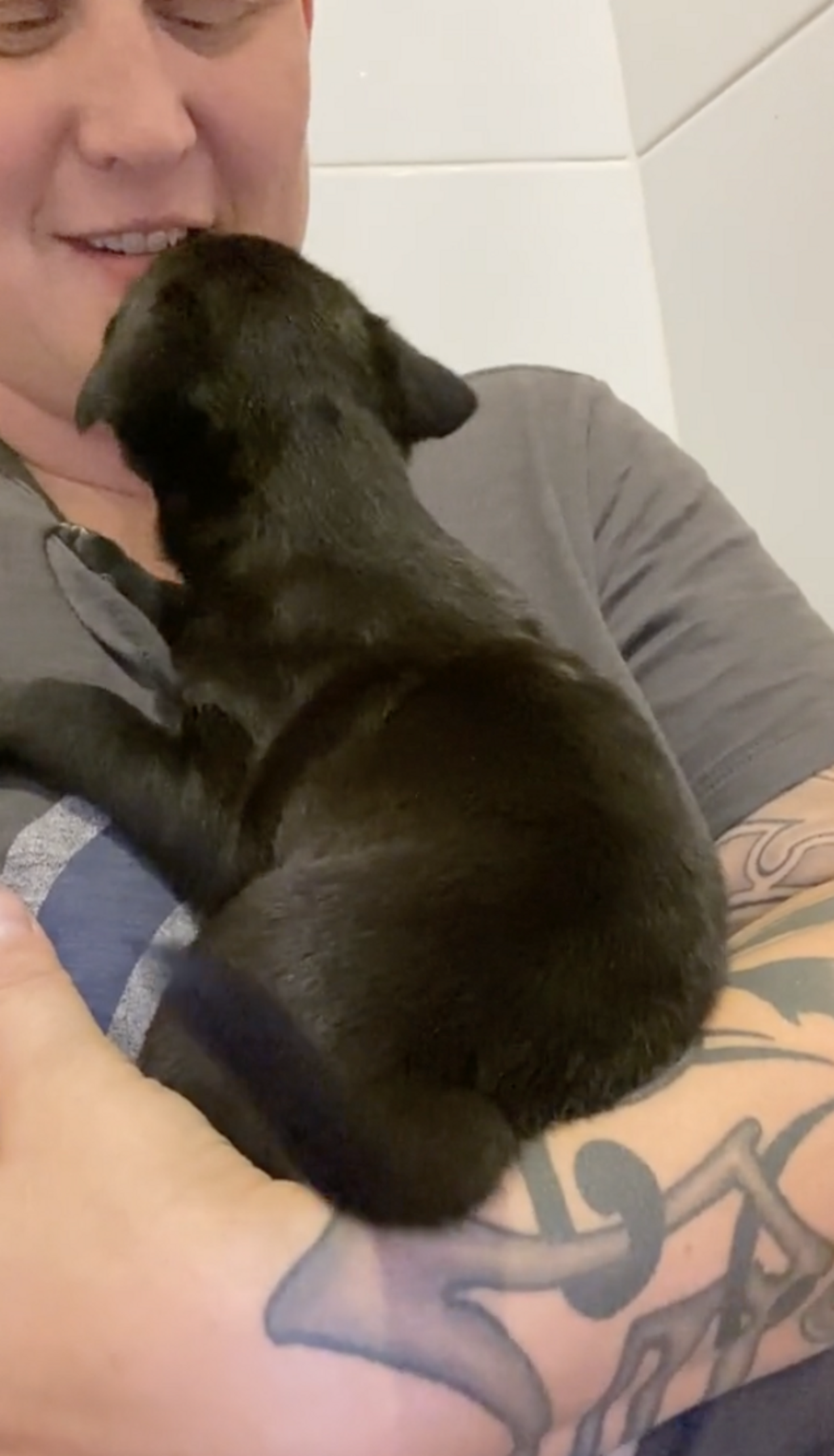 Poppy spent the majority of her days sleeping and cuddling her rescuers until one night, at around 11 p.m., she started to stir. Jackie and Carly quickly realized she was in labor and spent the next five hours helping her birth her puppies.