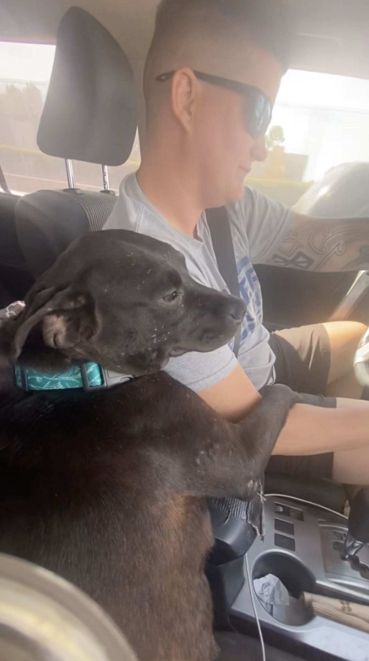 At the end of her short stay, Jackie and Carly drove Poppy home, and the sweet girl couldn’t contain her gratitude on the way there. She hooked her arm around Jackie in the driver’s seat, leaned against her with a smile and stared at Carly for more pets.