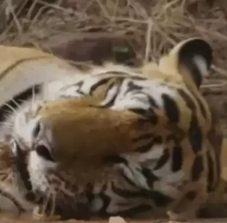 The other day, after a monsoon, Singh spotted a tiger napping in a puddle off in the distance. At first, it seemed like a purely tranquil scene — that is, until he zoomed in closer with his camera.